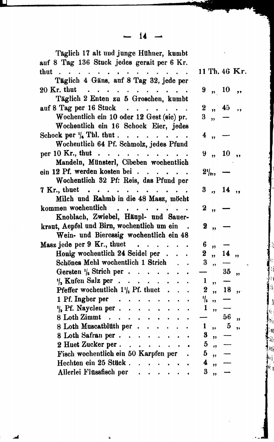 Wochentlich ein 10 oder 12 Gest (sic) pr.
