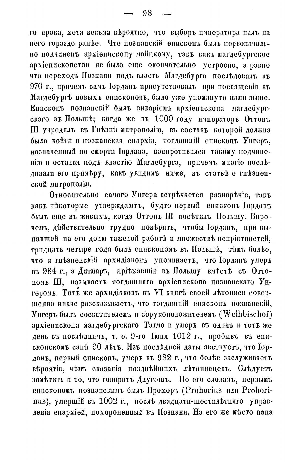 была войти н познанская cnapxi}l, тогдашпт Спископъ Унгеръ,