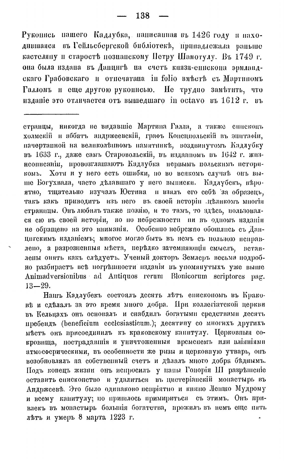 Нашь Кадлубекъ состоялъ дссять .wI;tl'b енископомъ въ Крако-