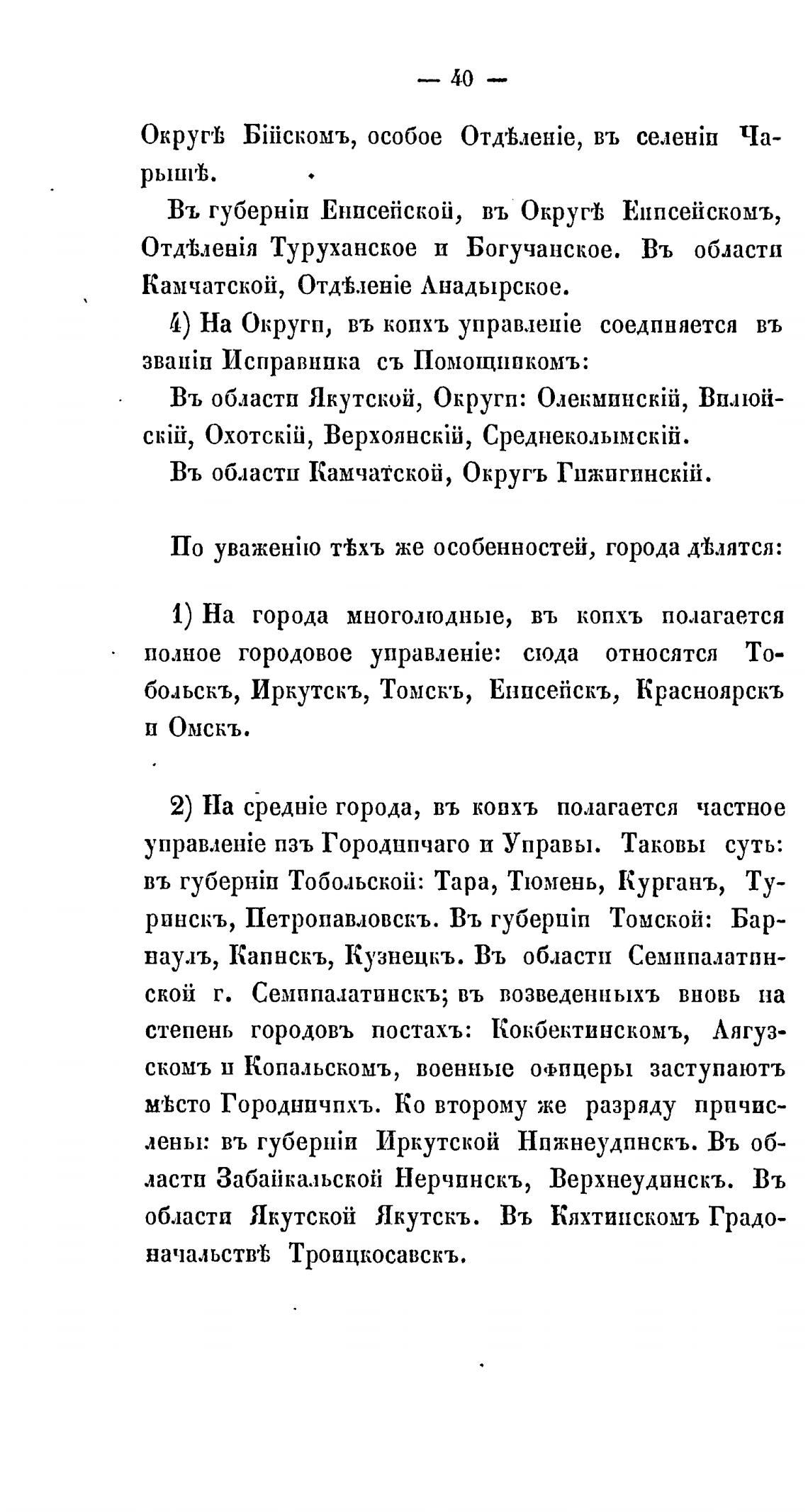 больскъ, Иркутскъ, Томскь, Енпсейскъ, Красноярскъ