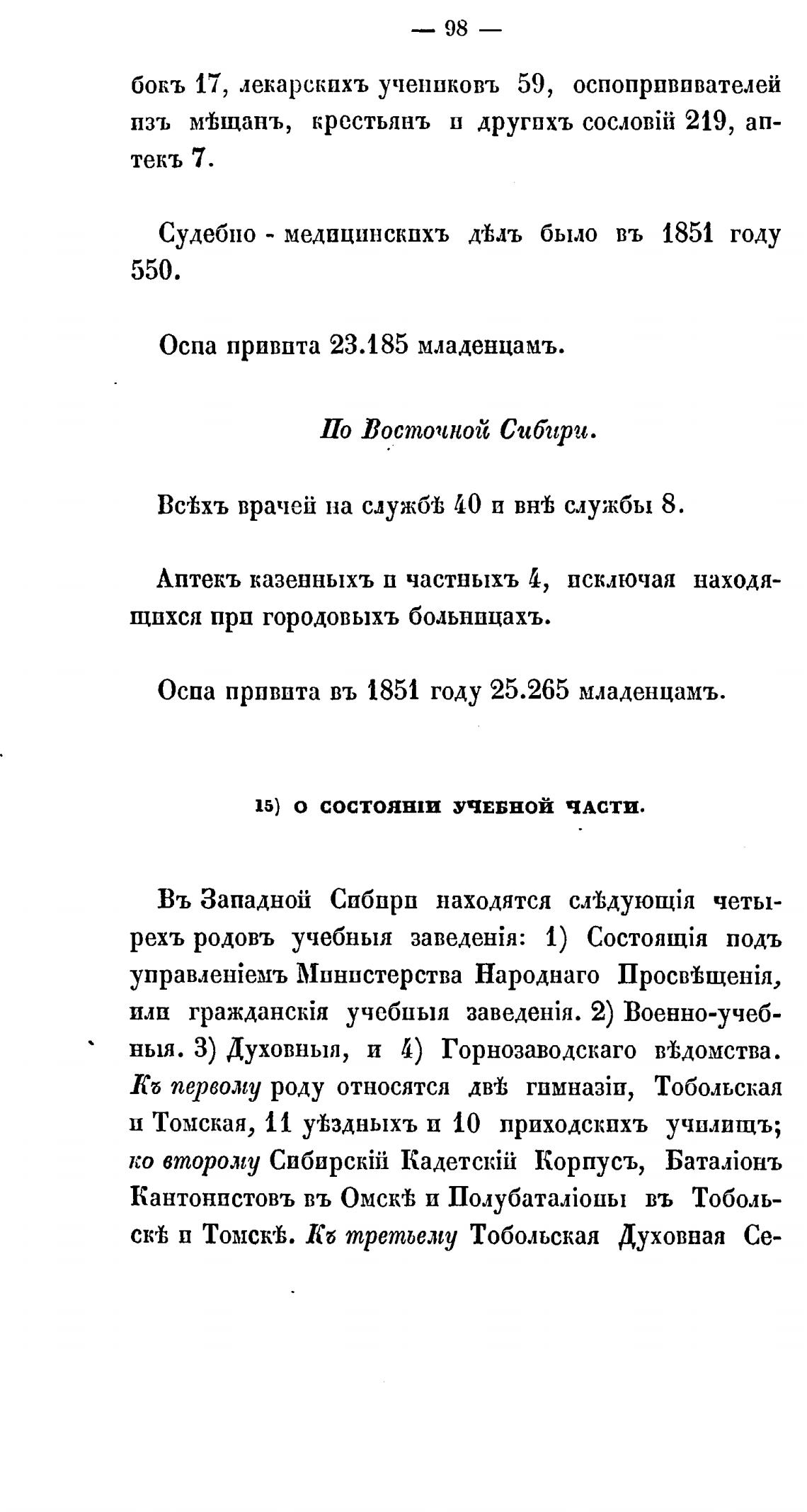 Оспа прпвпта въ 1851 году 25.265 младенцамъ.