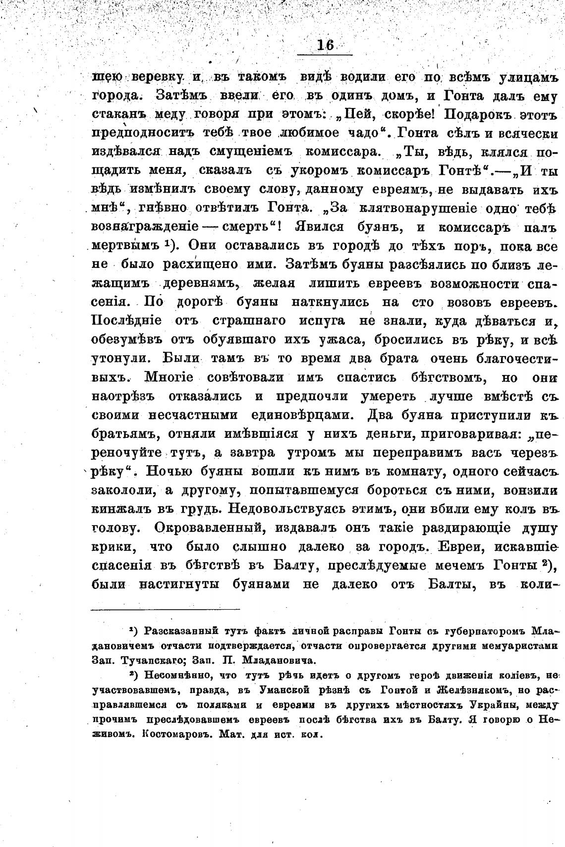 1) Разсвазавный тутъ фавтъ личной расправы Гонты сь губерваторомъ Мла—