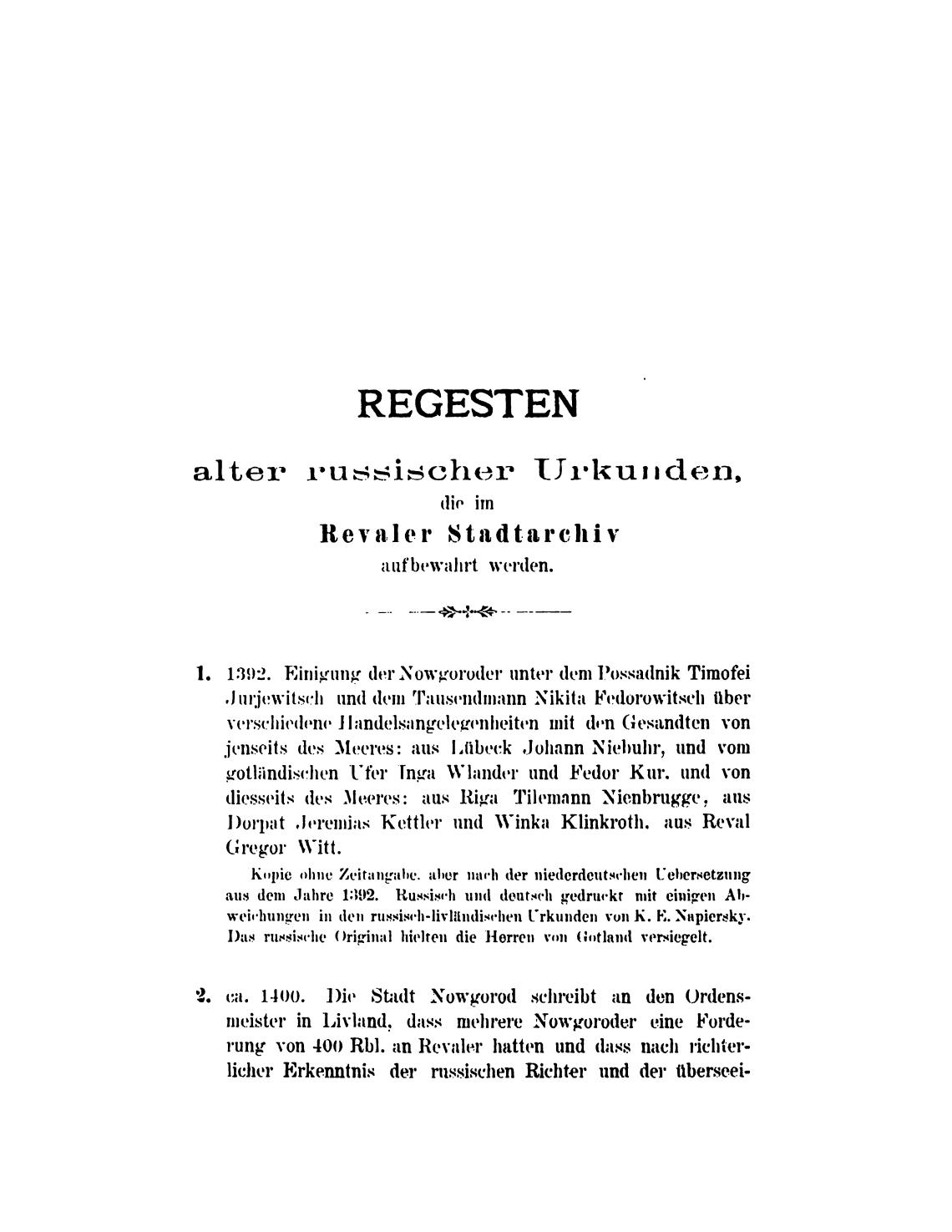 aus dem Jahre 1392. Russiwh deatscll gedruekr mit ei»igen А Ь-