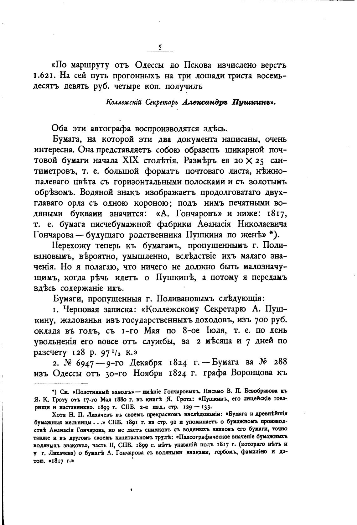 у г. Лихачева) О бумагЬ А. Гончарова съ водяными знаками, геомъ, й да-