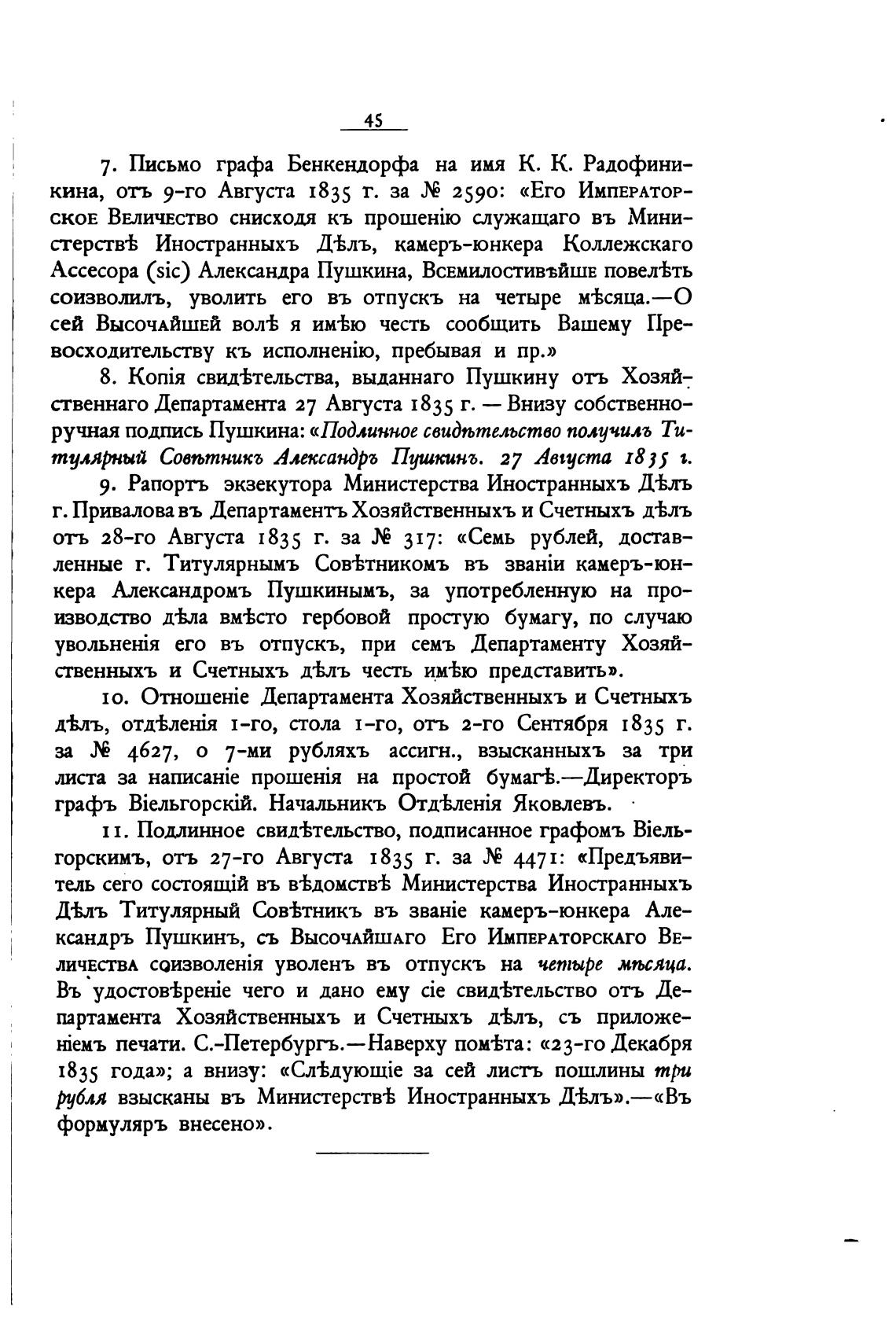 8. свид±тельства, выданнаго Пушкину отъ Хозяй—