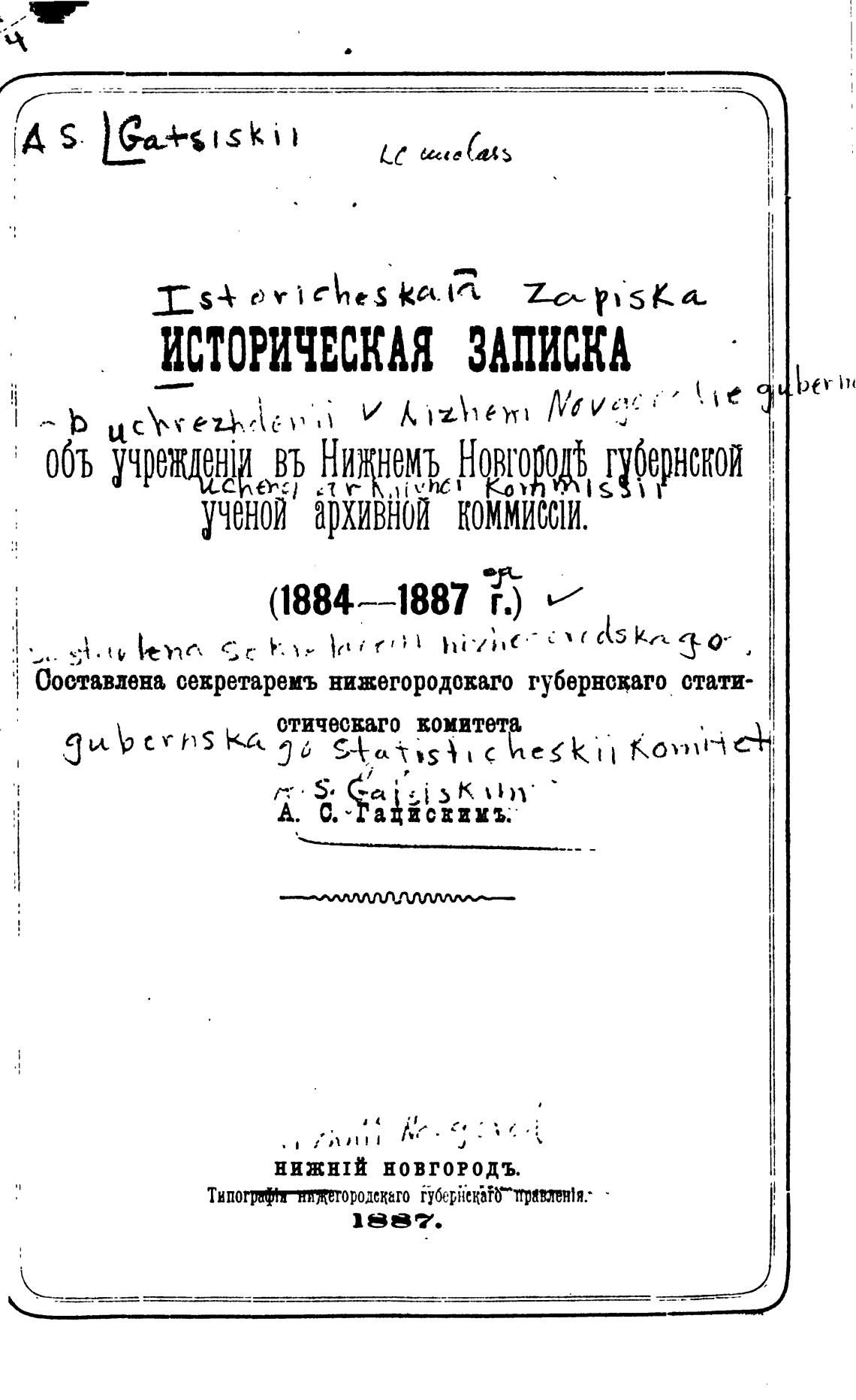 Составлена севретареиъ нижегородоваго губернсваго стати-