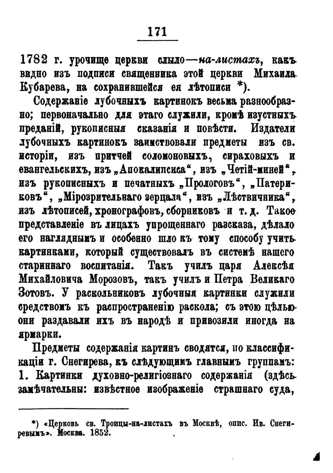 *) «Цекковь св. Троицы-на-листахъ въ Москв±, опвс. Ив. Снеги-