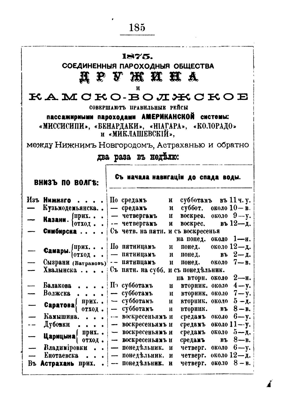 между Нижнимъ Новгородомъ, Астраханью и обратно