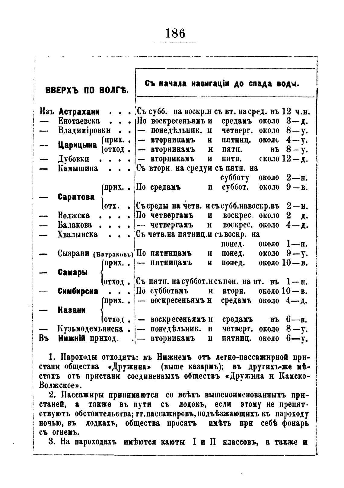 1. Пароходы отходятъ: въ Нижнемъ отъ легко-пассажирной при-