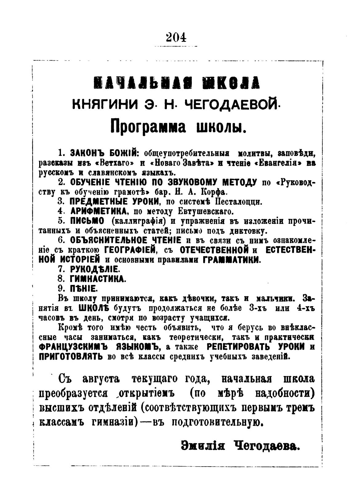 Съ августа текущаго года, начальная школа