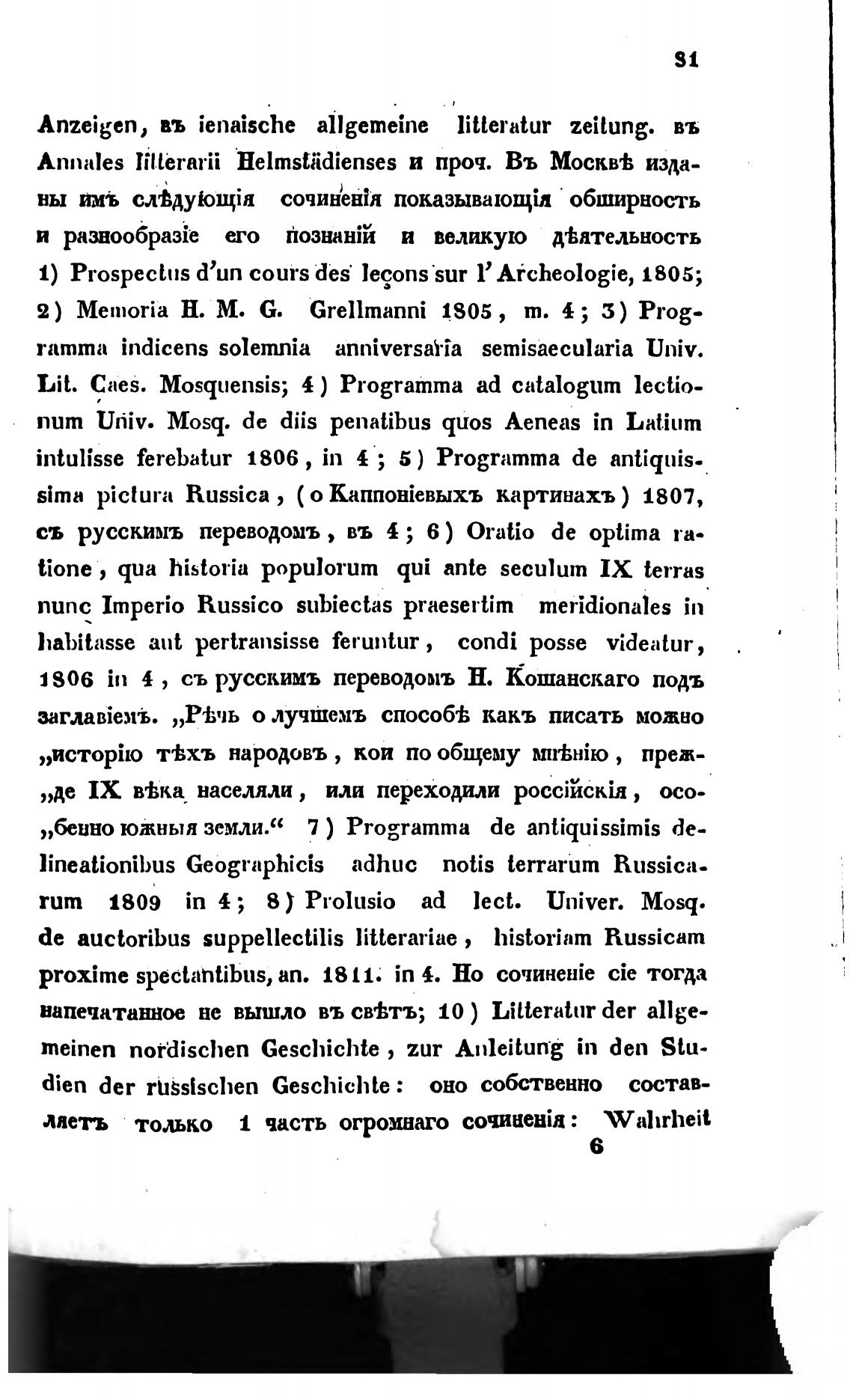 rum 1809 in 4; 8) Prolusio ad lect. Univer. Mosq.