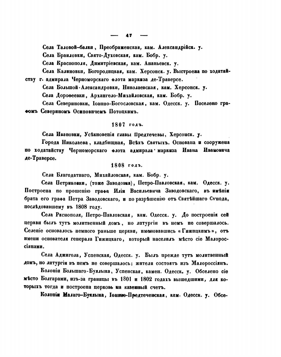 Села Ряснополя, Петро-Павловская, нам. Одесск. у. До nocTpoeBi1 сей