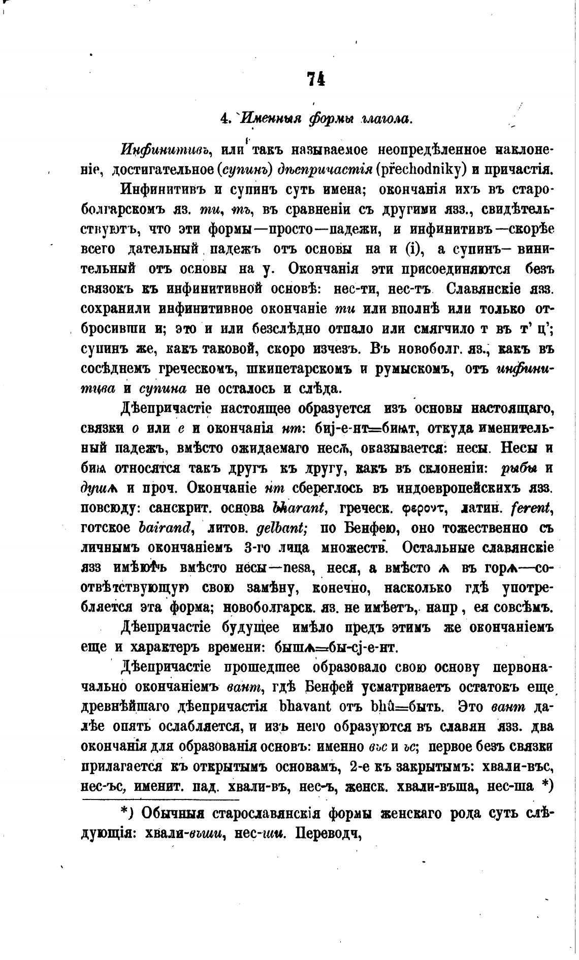 Инфинитивъ и супинъ суть имена; ихъ въ старо-
