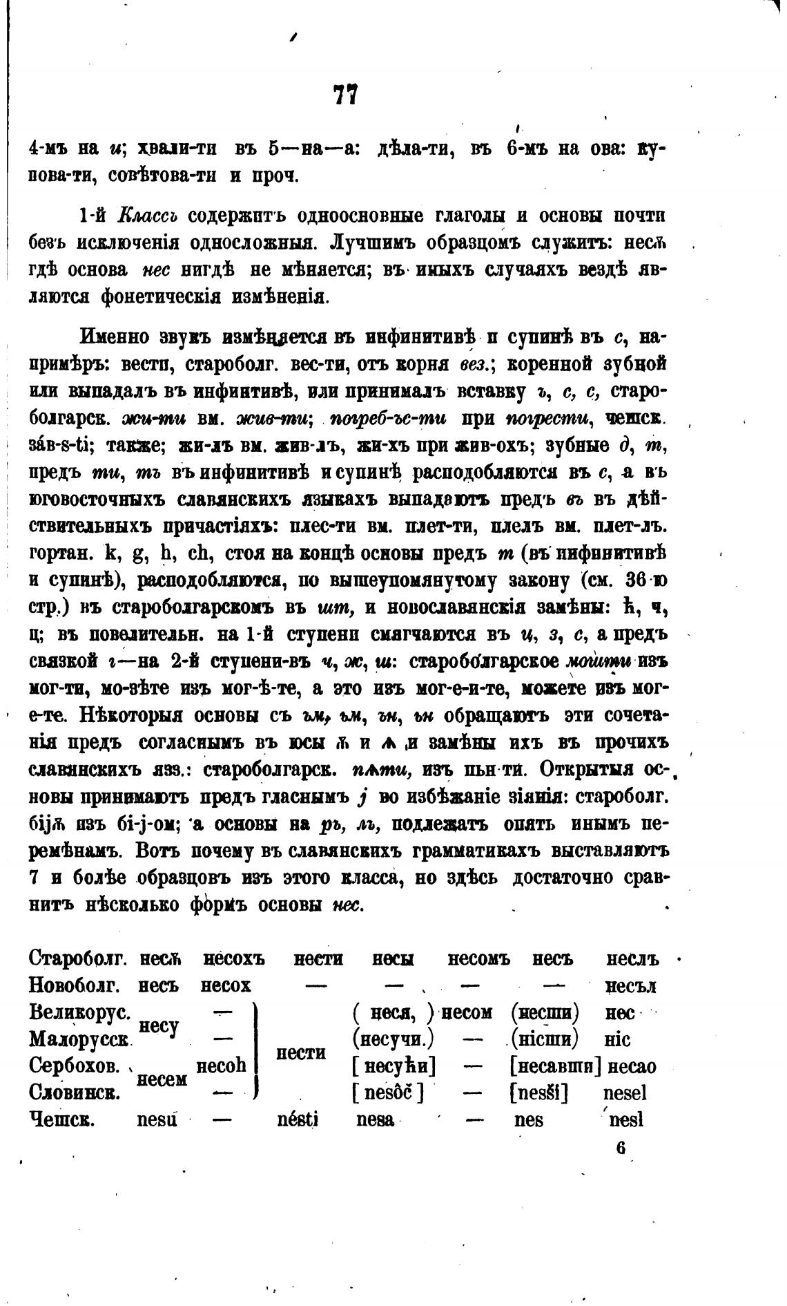 1-й Классо содержптъ одноосновные глаголы и основы почти