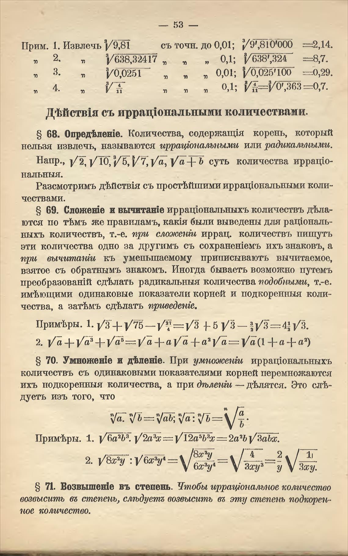 ныхъ количествъ, т.-е. при слслсетпи иррац. количествъ пишутъ