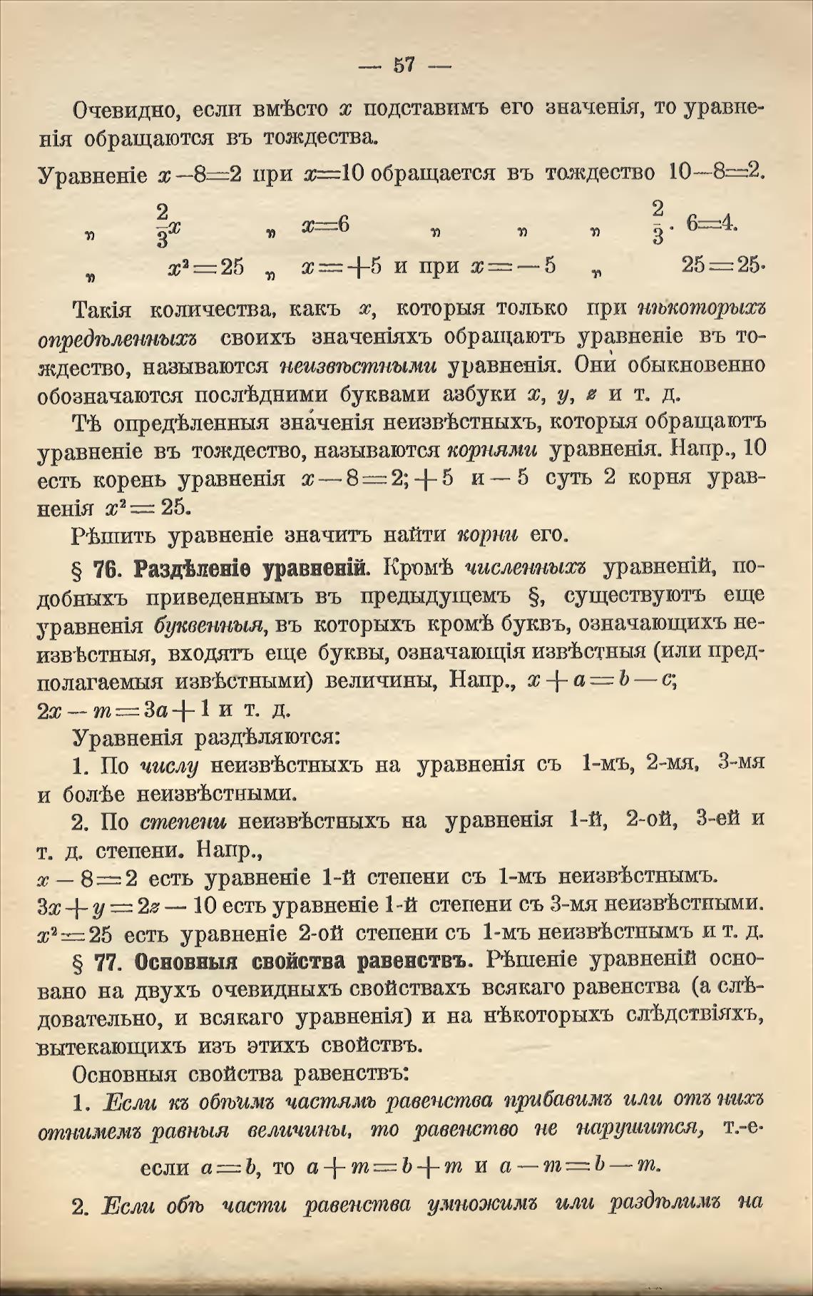 5 77. Основныя свойства равенствъ. 1)'hIIIeHie уравненШ осно-