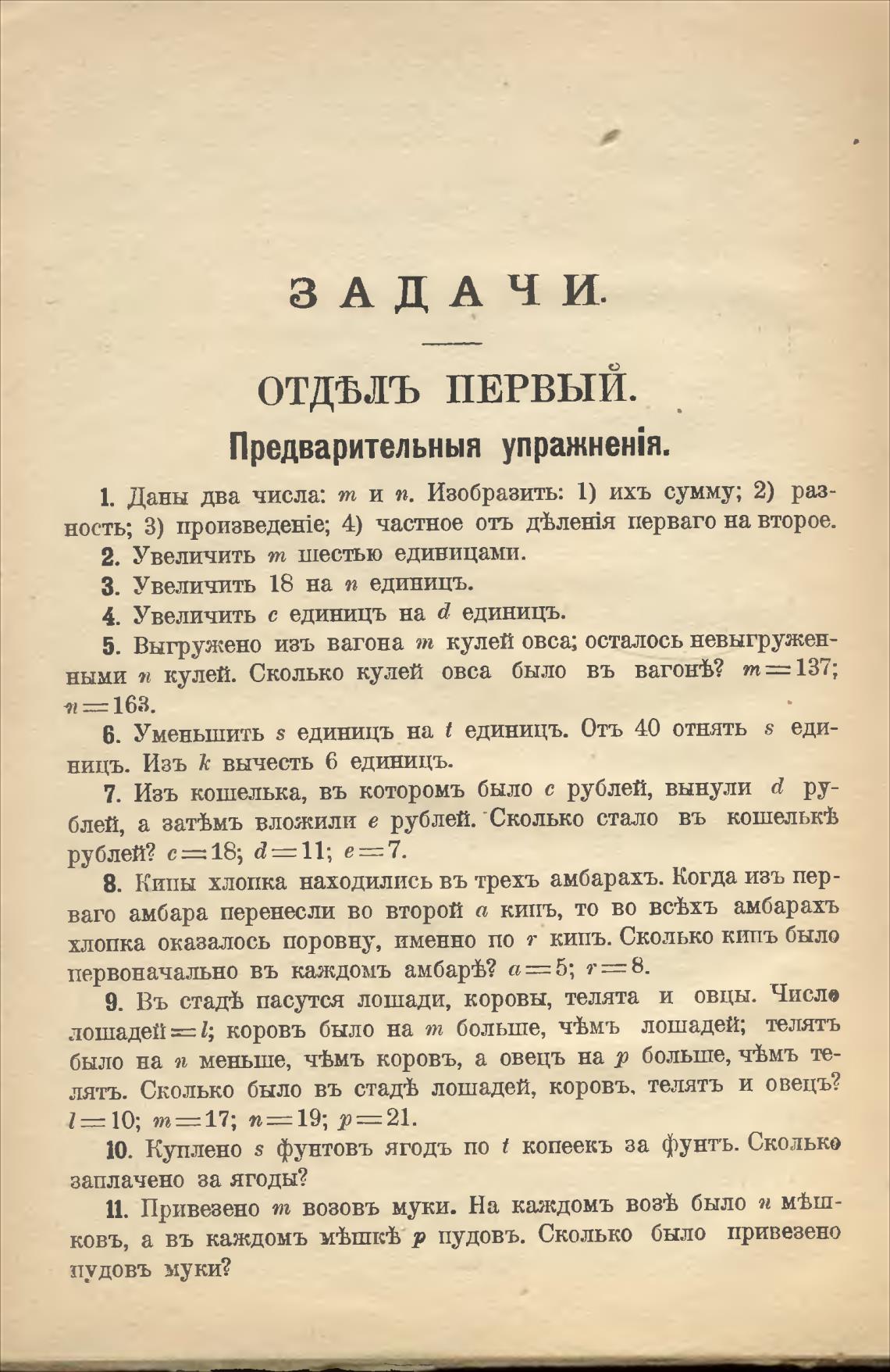 5. Выгружено изъ вагона т кулей овса; осталось невыгружен-