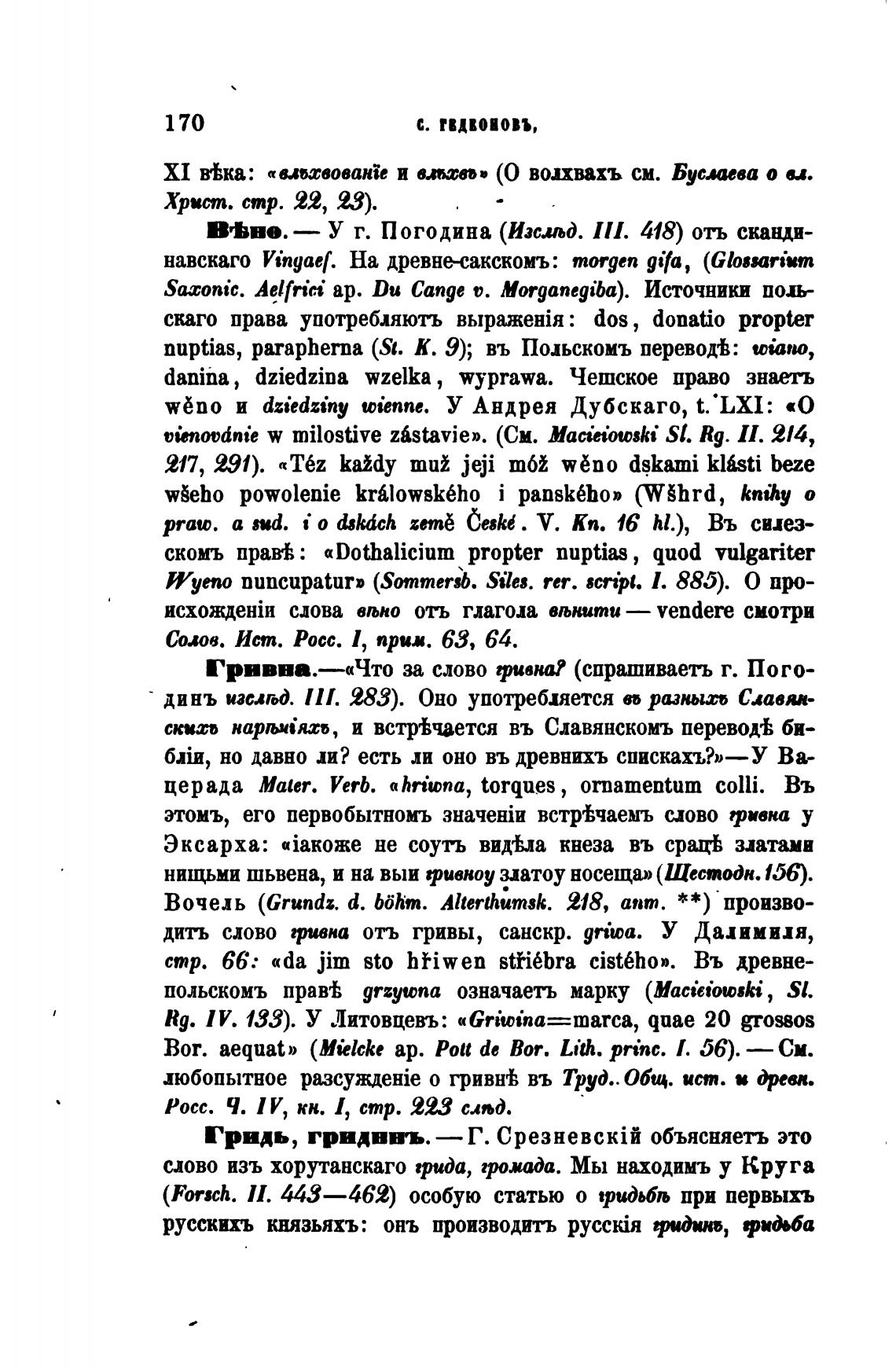 Гридь, гридвнъ. — Г. объясняетљ это