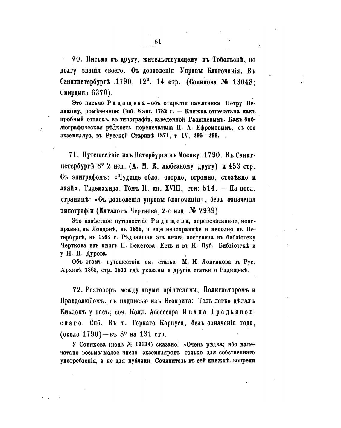 Архив'Ь 1868, стр. 1811 гдФ, указаны и статьи о Радищевгћ.