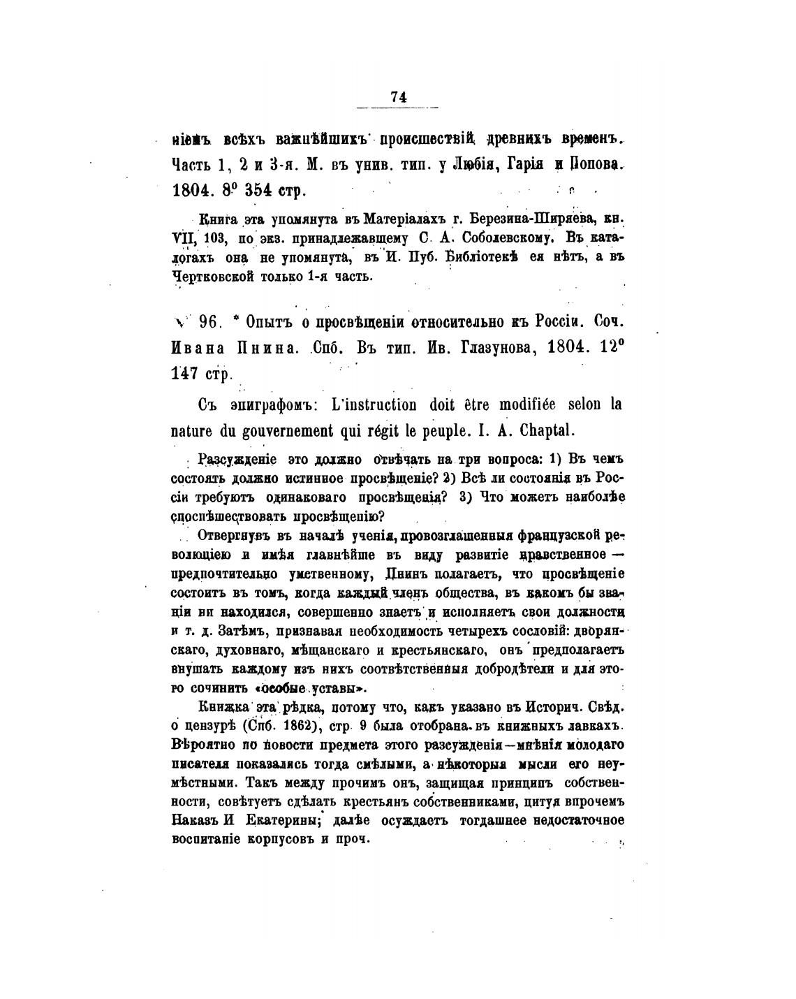 Ивана Пнина. .0пб. Въ тип. Ив. Глазунова, 1804. 120