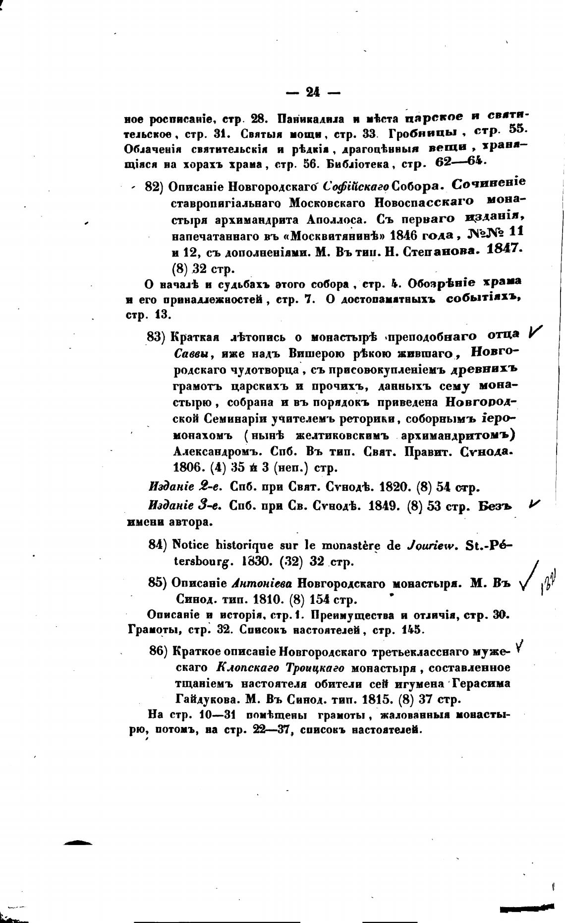 85) hmoniega Новгородскаго монастыря. М. Въ