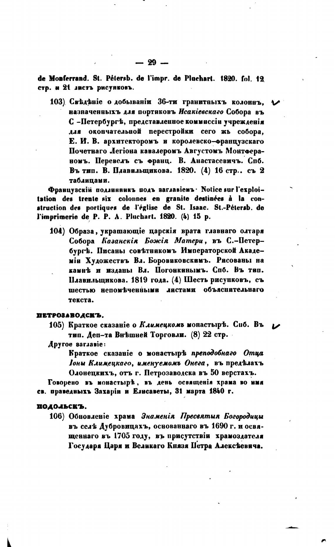 103) CB'bxbHie о 36-ти гранитныхъ коловвъ,