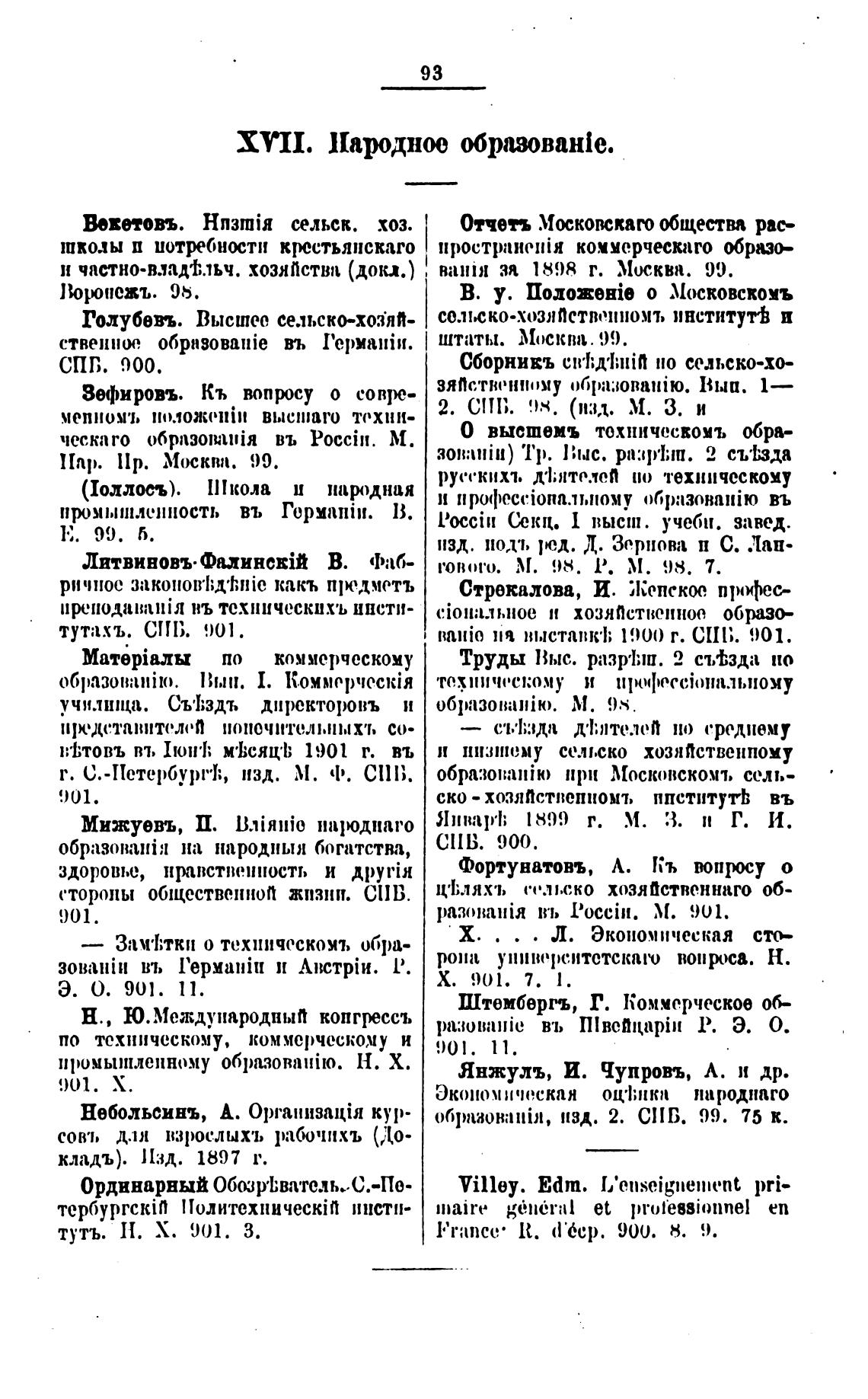 XYII. Народное образован1е.