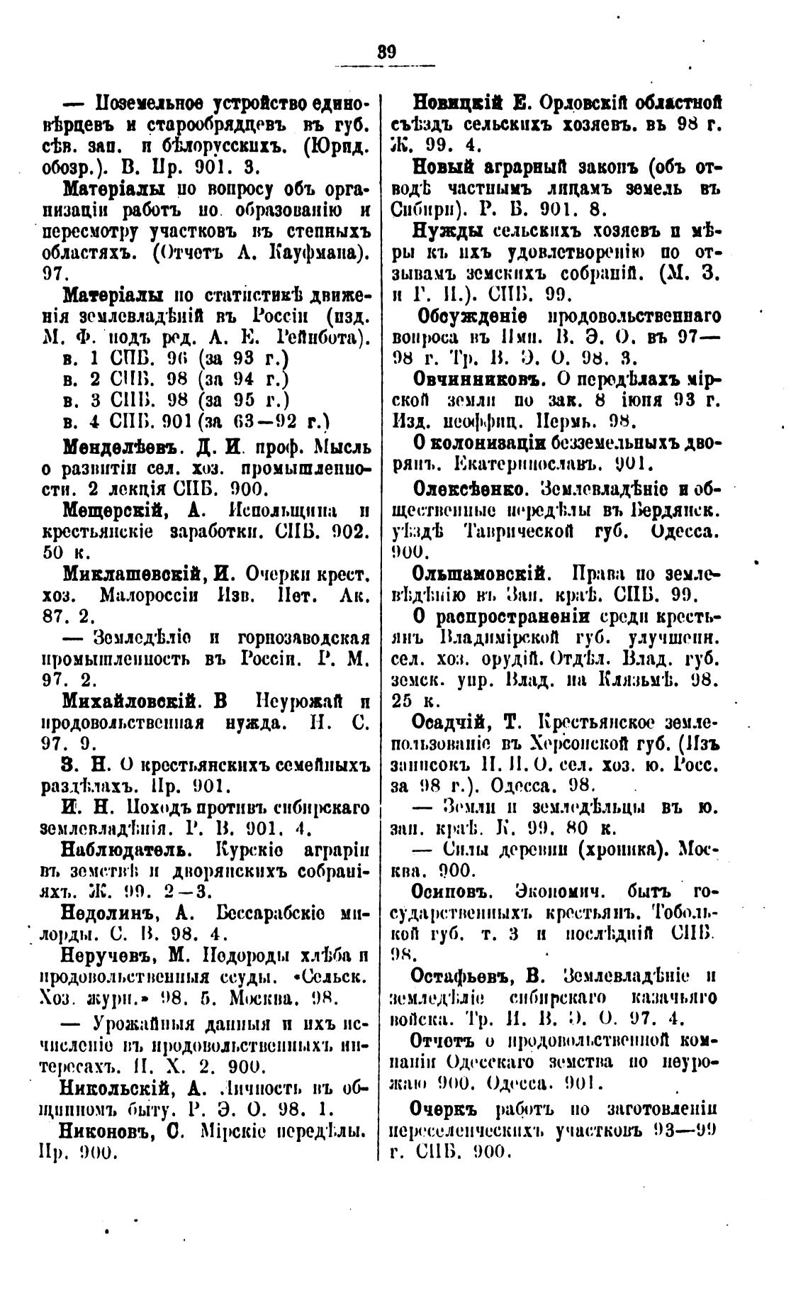 занпсокъ ll. И. 0. сел. хоз. ю. L'occ.
