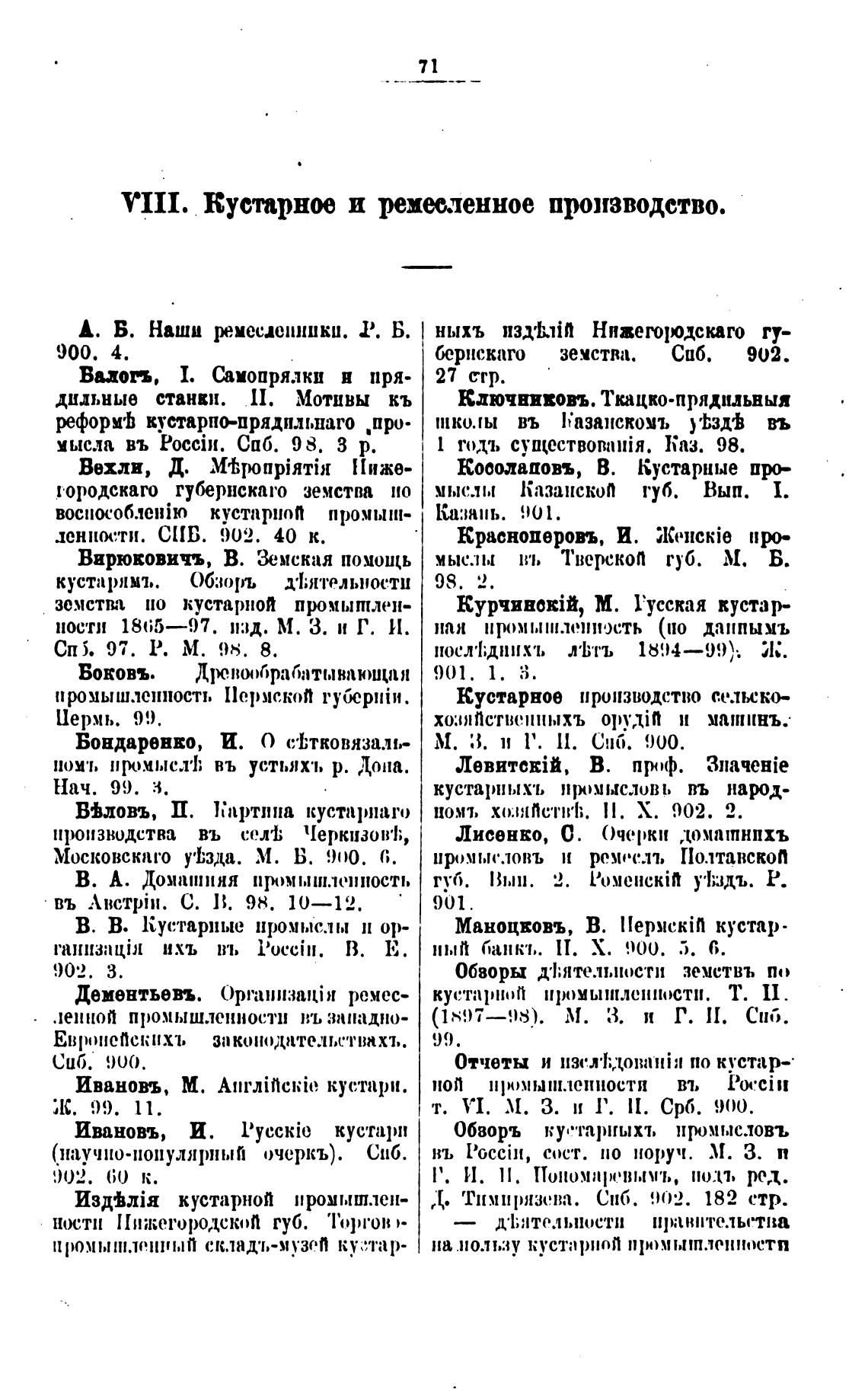 VIII. Кустарное и ремњченное производство.