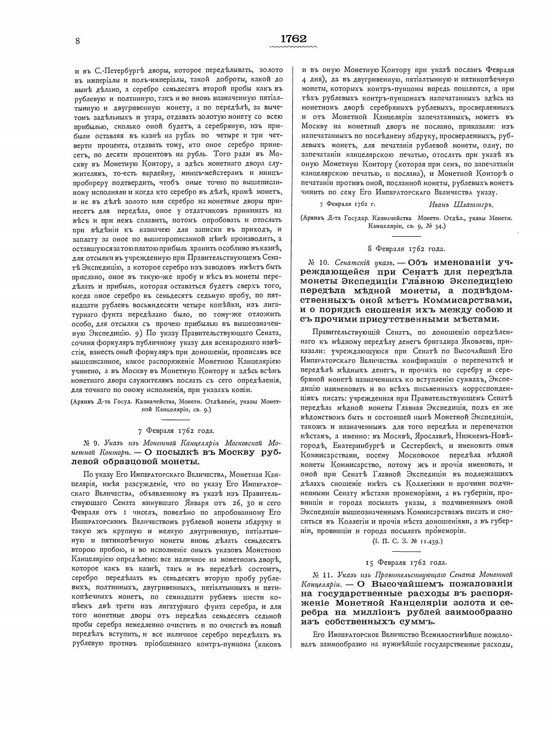 1 S Февраля 1762 года.