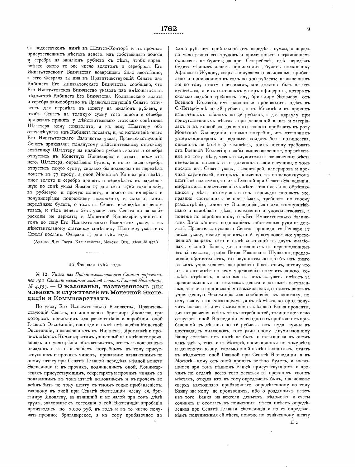 Сената“ послань Февраля 15 дня 1762 года.