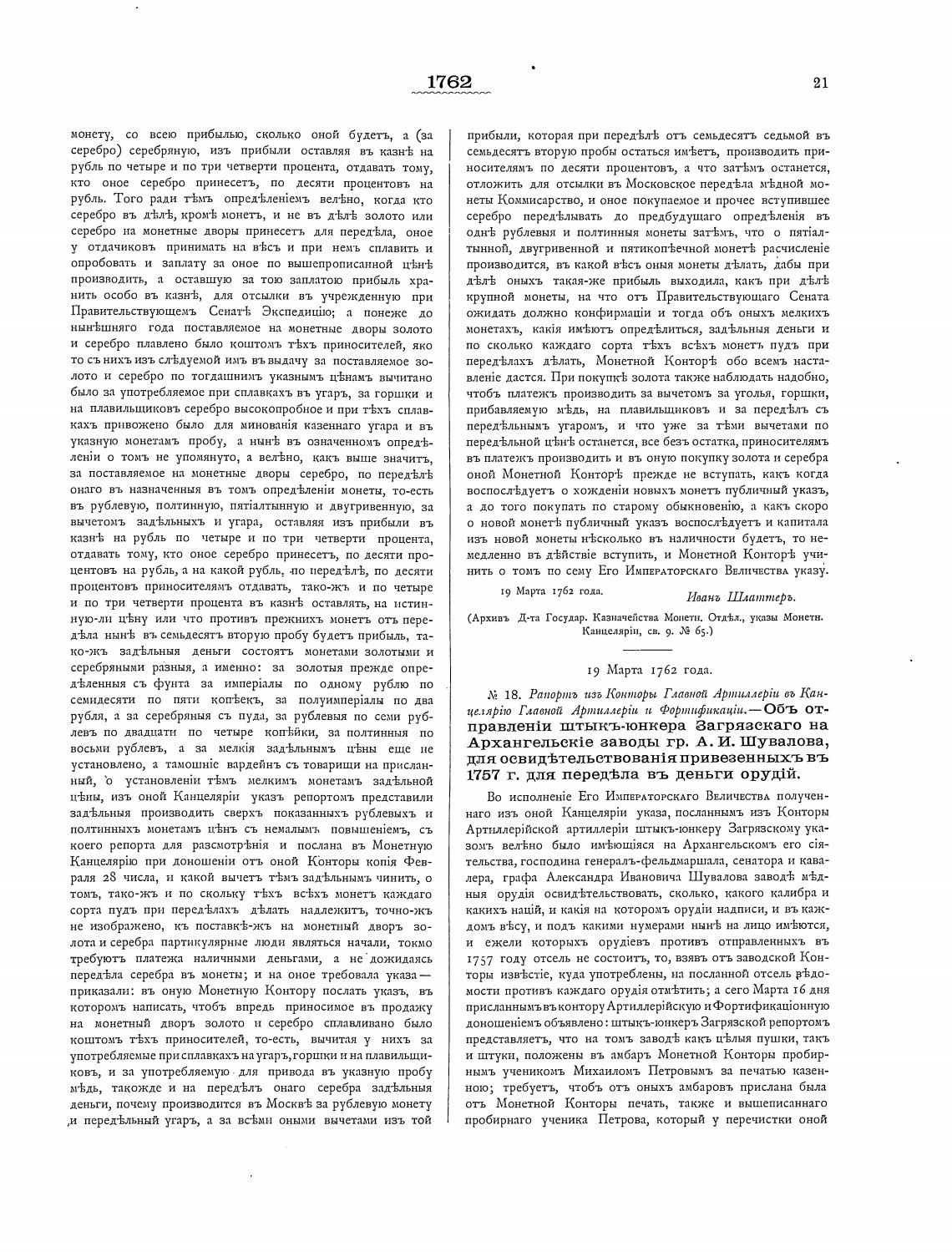 19 Марта 1762 года.