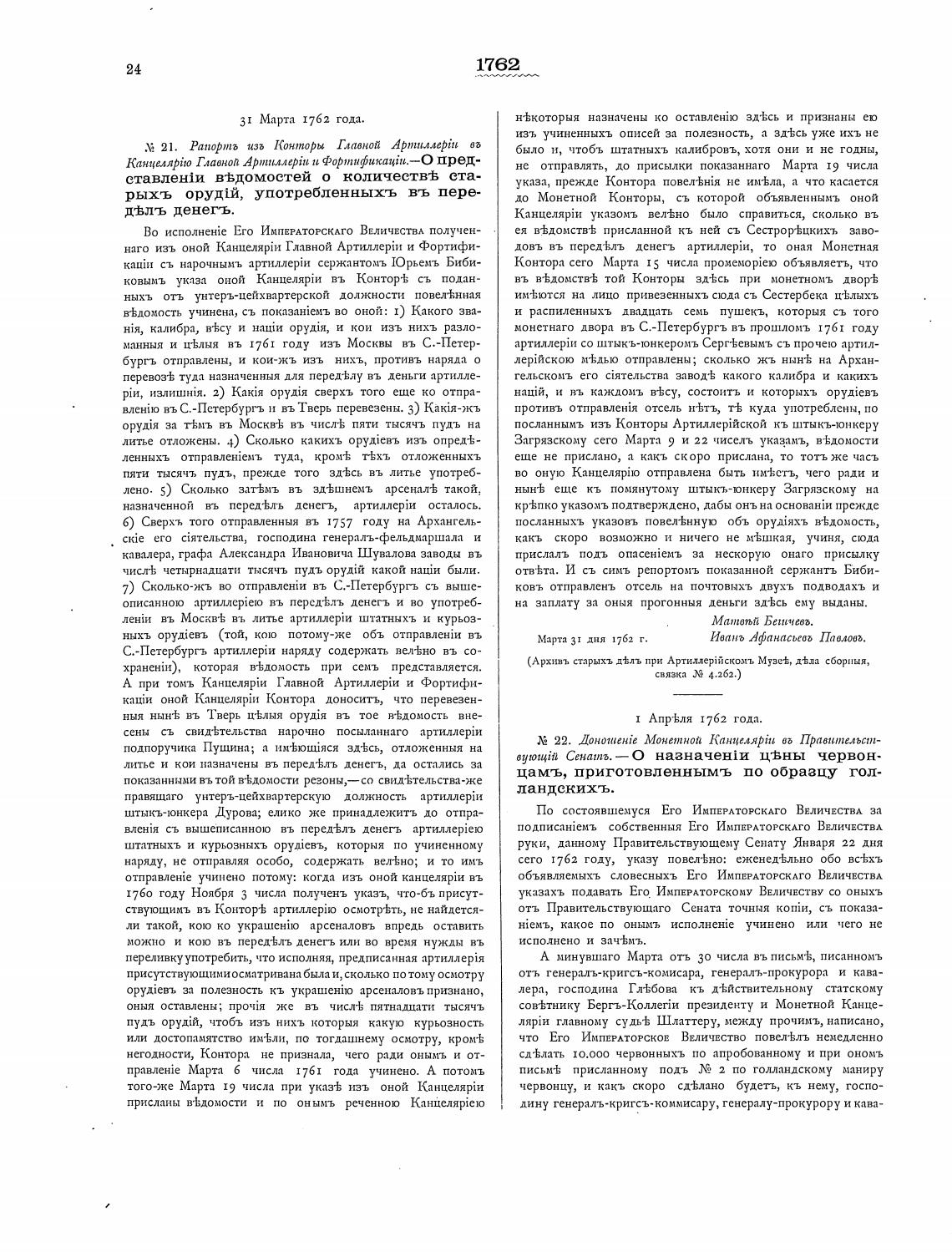 31 Марта 1762 года.