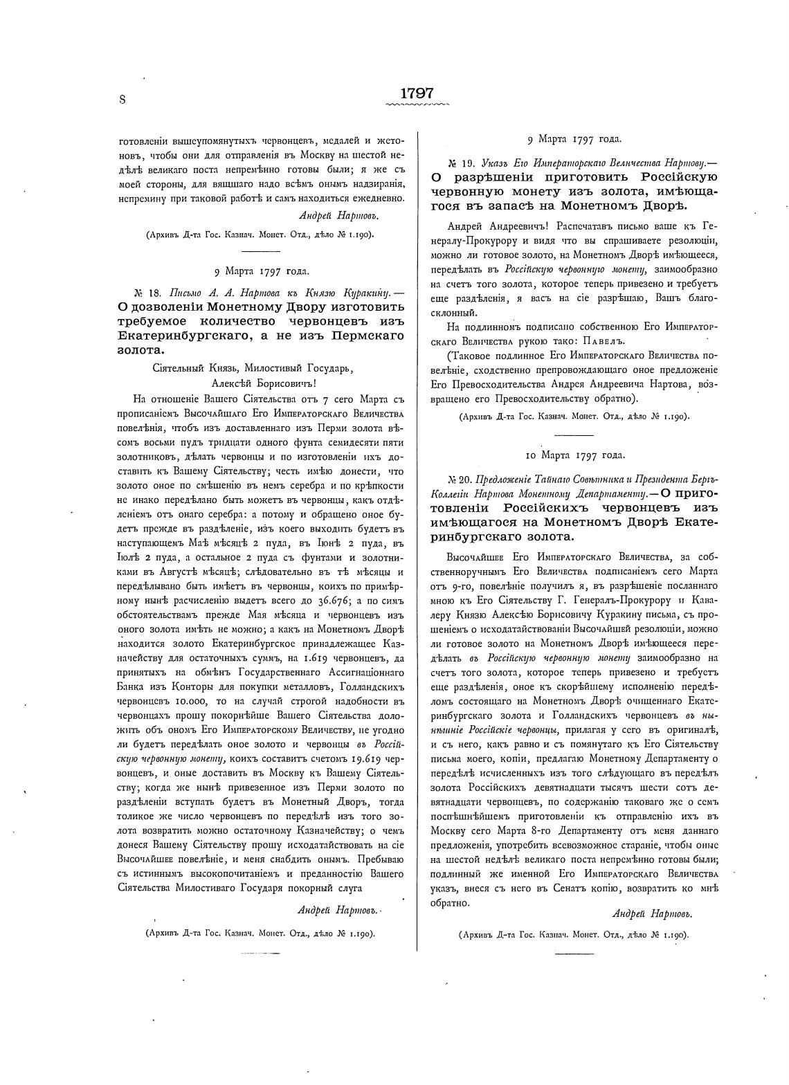 (Архивъ Дега Гос. Казнам. Монет. Отд., дз;ло Х 1.190).