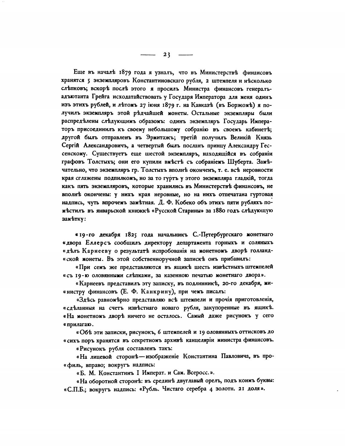 хранятся 5 экземпляровъ Константиновскаго рубля, 2 штемпеля и н±сколько