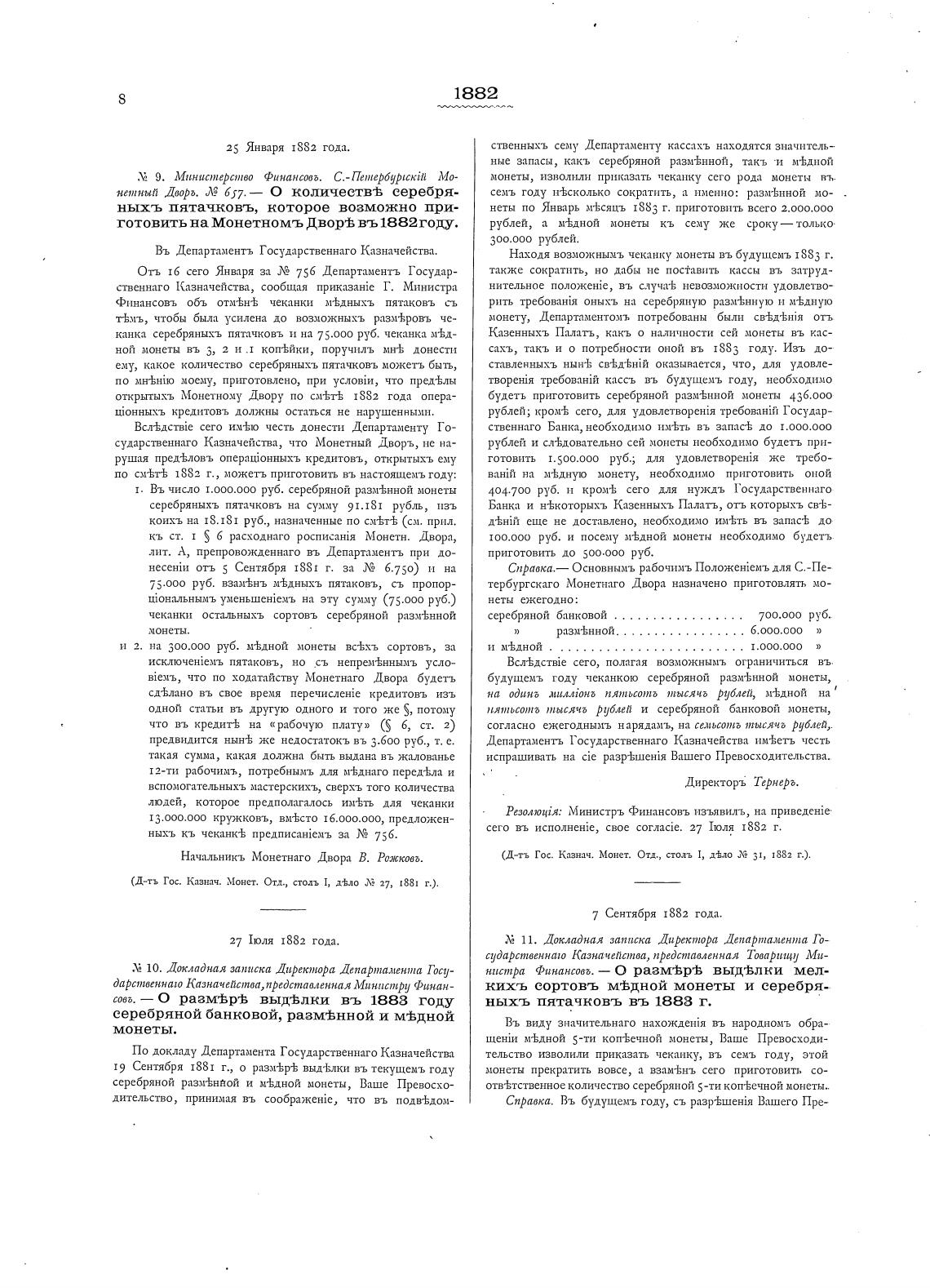 (Д-гь Гос. Казнач. Монет. Отд., столь 1, д±ло 31, 1882