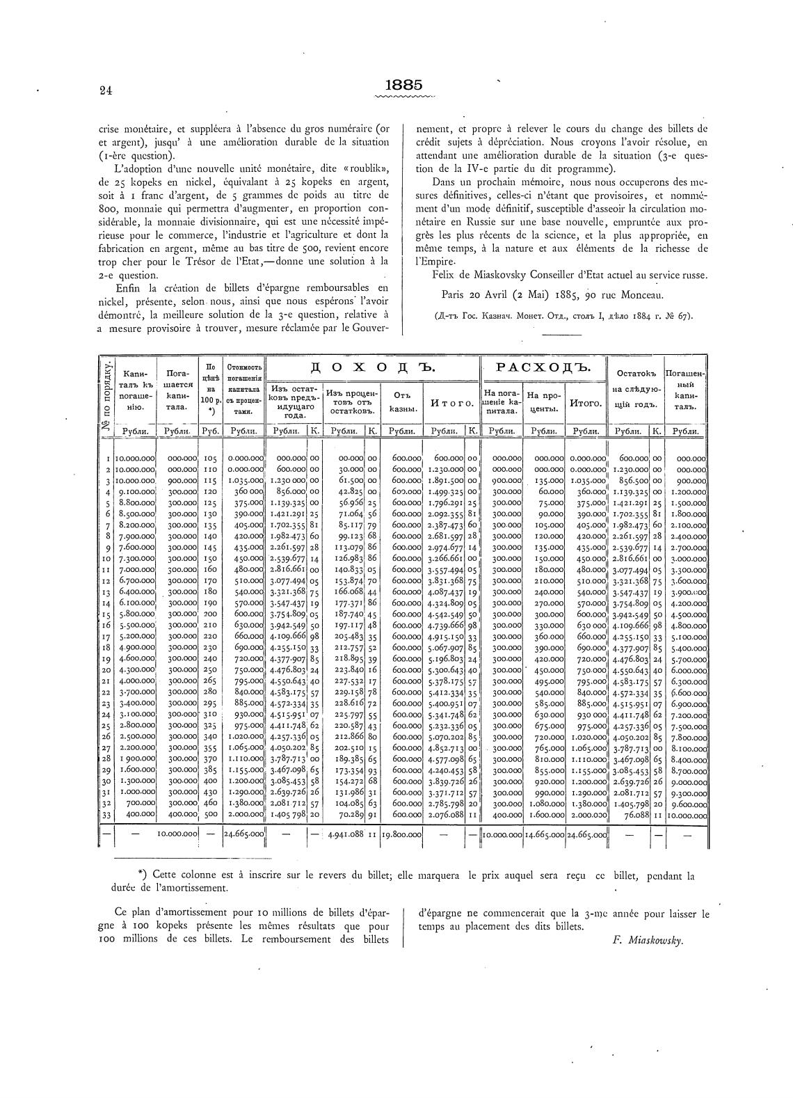 (Д-тт Гос. Казнач. Монет. Отд., столь 1, д•Ело 1884 г. 67).