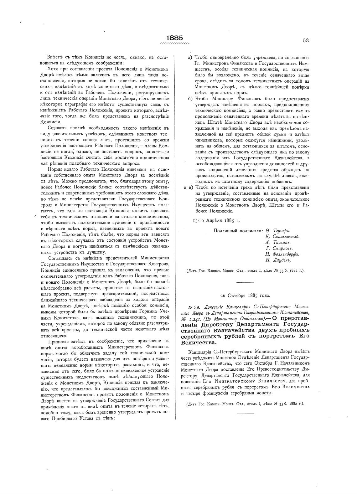 (Д-ть Гос. Казнач. Монет. Отд., столь 1, б. 1882