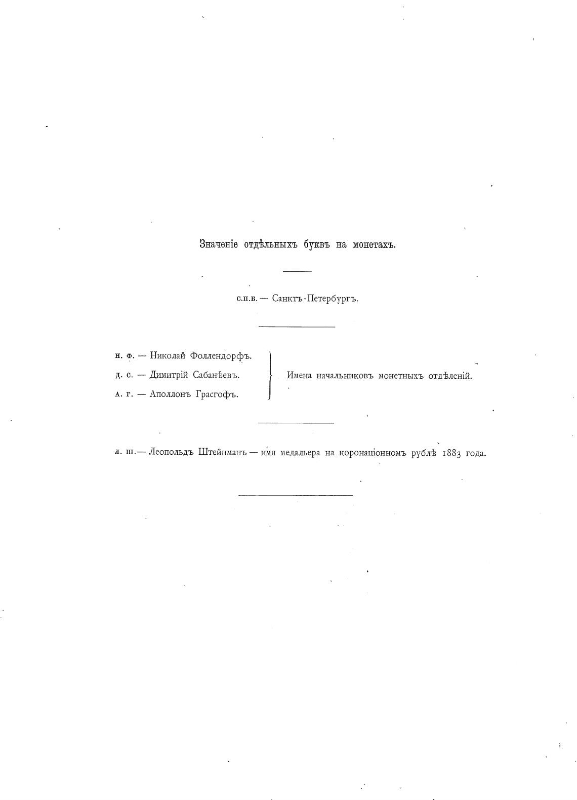 л. ш.— Леопольдъ Штейнманъ — имя медальера на рубль 1883 года.