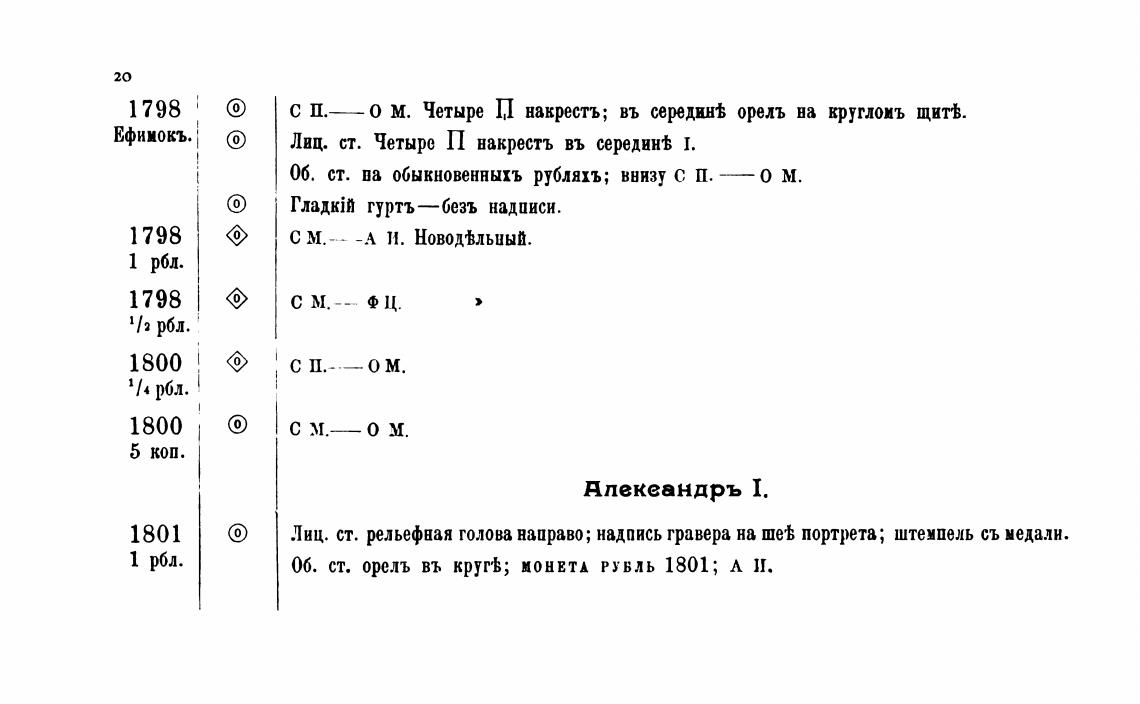 орелъ въ круг•Ь; МОНЕТА рувль 1801; л И.
