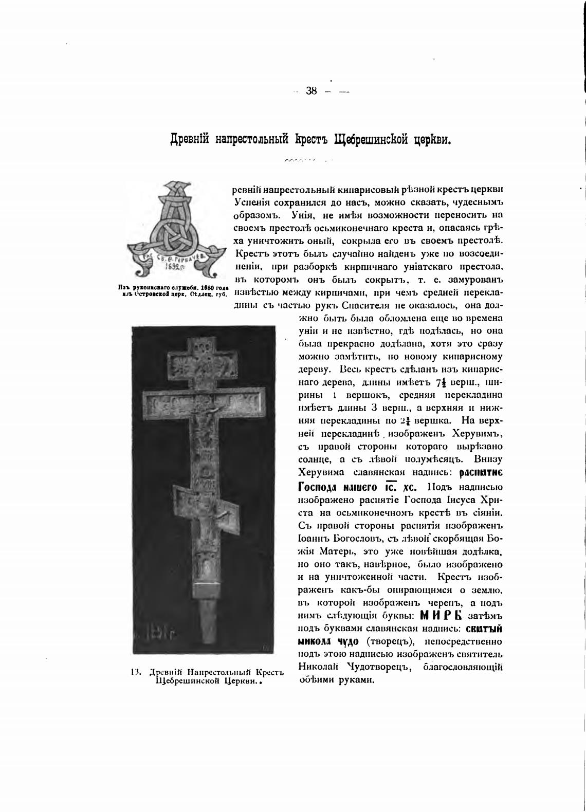 Древн1й напритольный Кресть Щ±решинсК0й церкви.