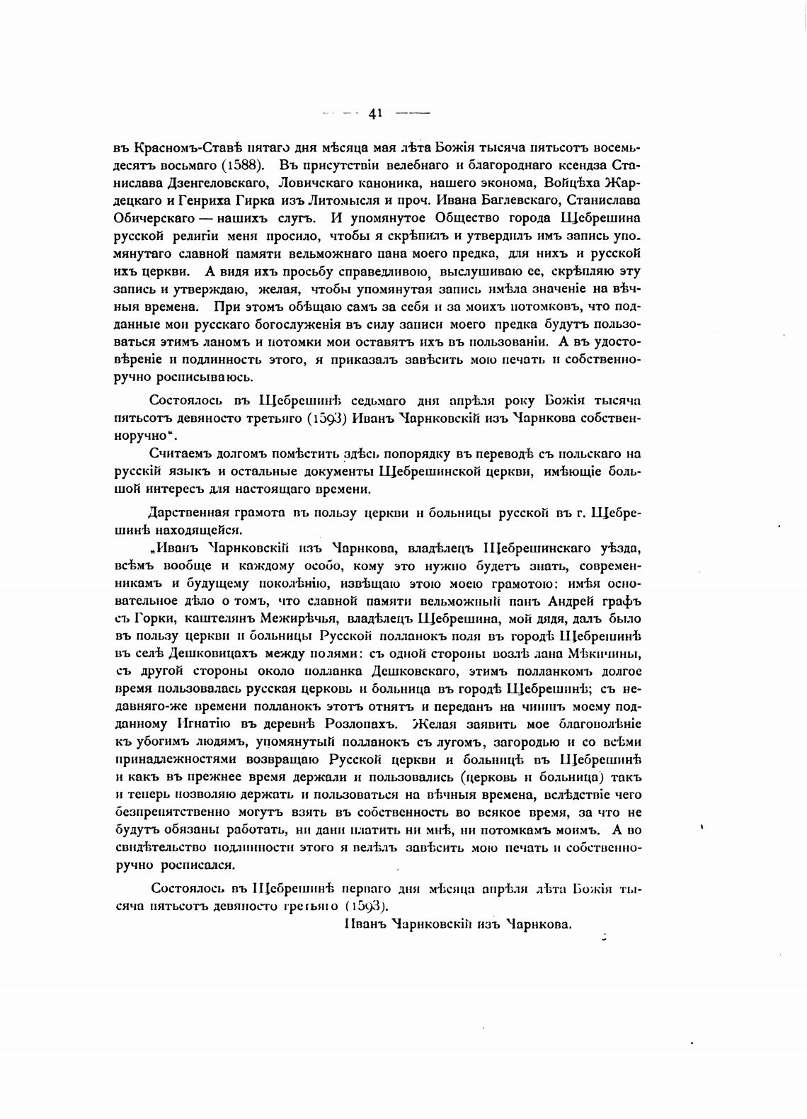 пятьсотъ девяносто третьяго (1593) Ивань 'IapHk0Bckiti изъ Чарнкова собствен-