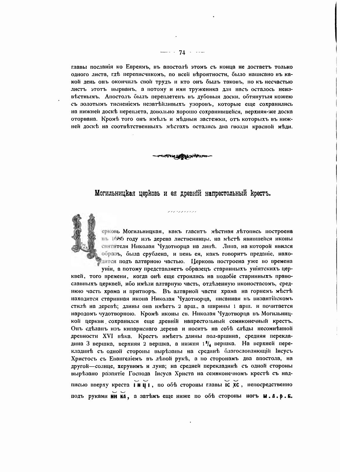 МогильницКая церковь и ея древн1й напрестольный Критъ.