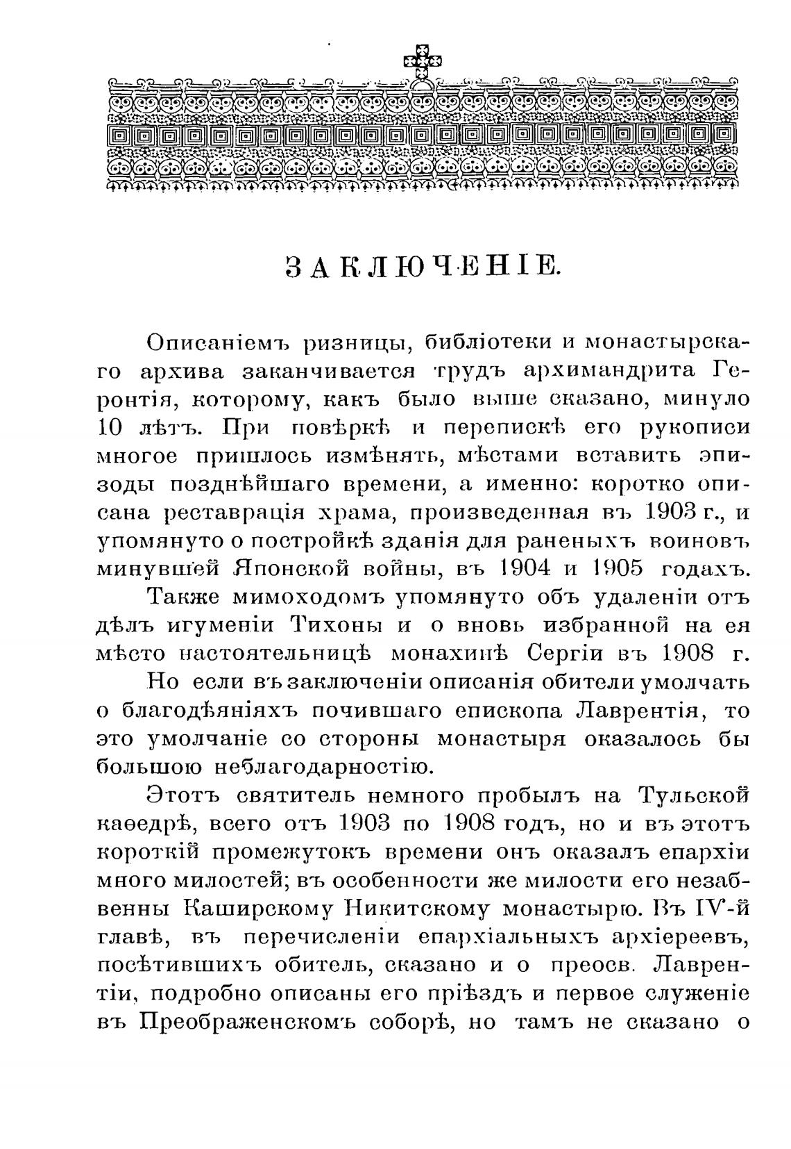 посвтившихъ обитель, сказано и о преосв. Лаврен-