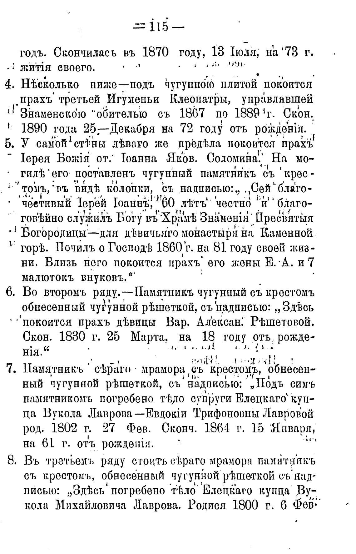 памятникомъ погребено тђло сущЉуги Елецкаго' куп-