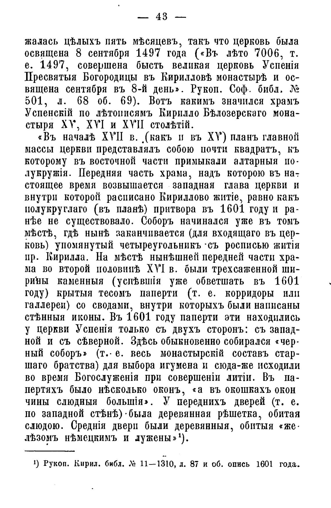 1) Рукоп. Кнрил. библ. 11—1310, д. 87 и об. опись 1601 года.