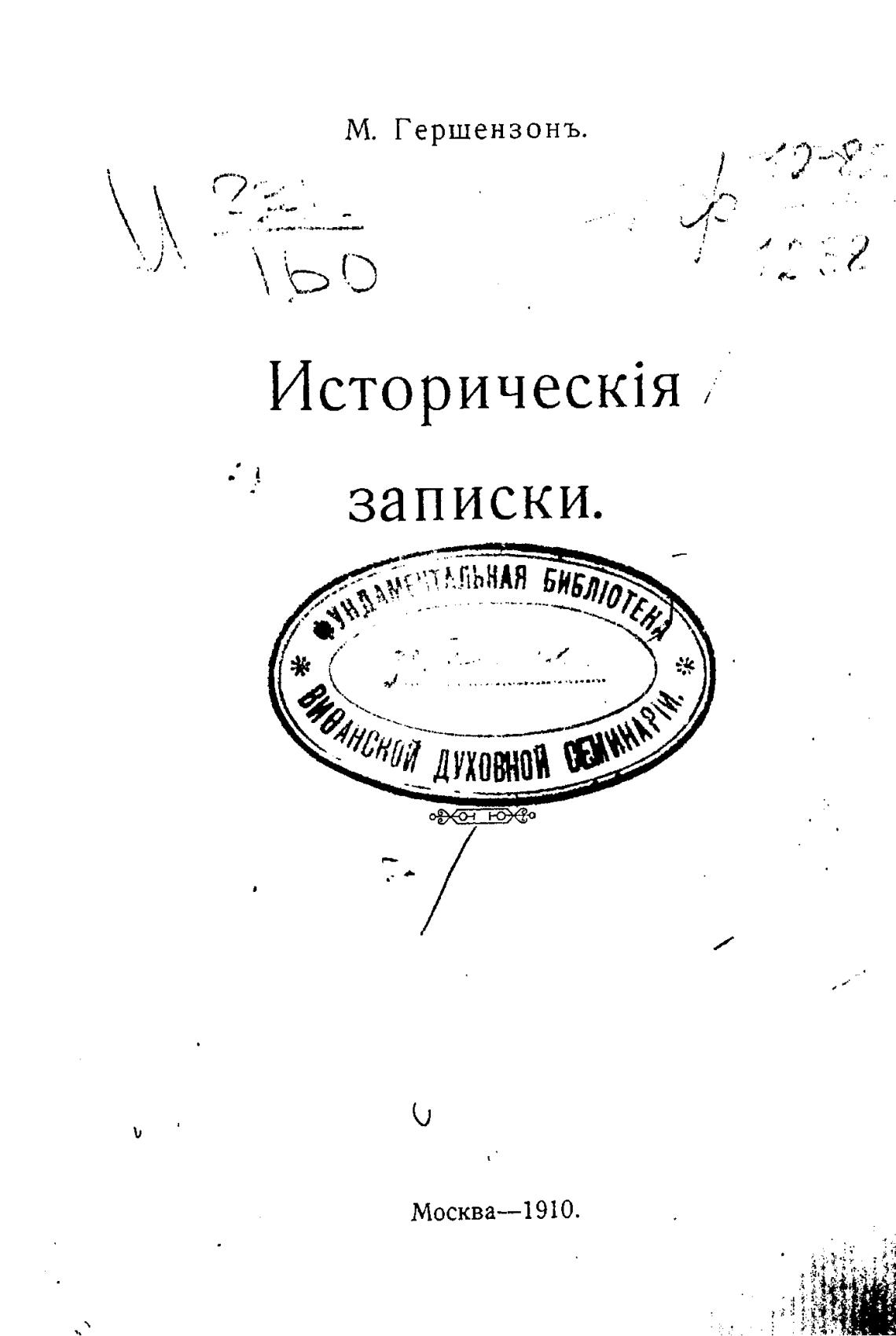 Исторические записки. - Гершензон М.