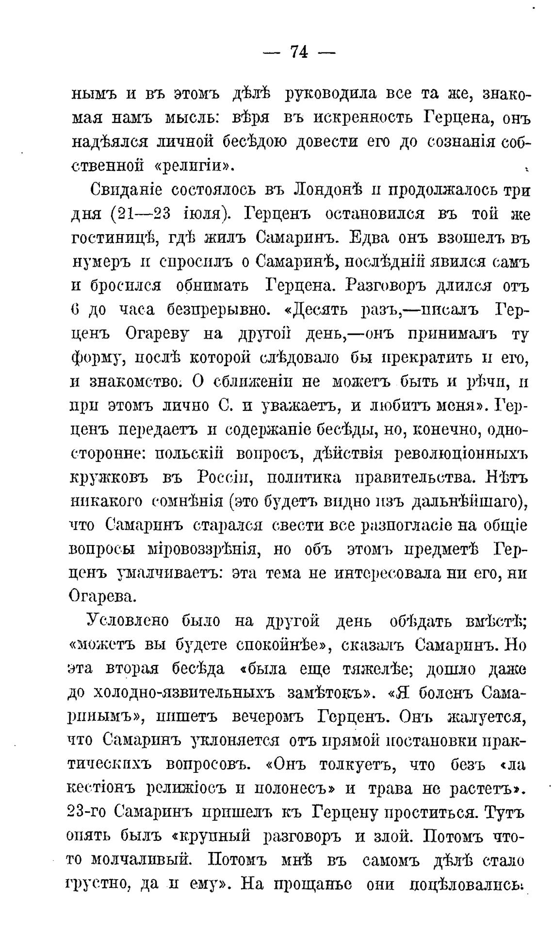 и бросился обнимать Герцена. Разговоръ длился отъ