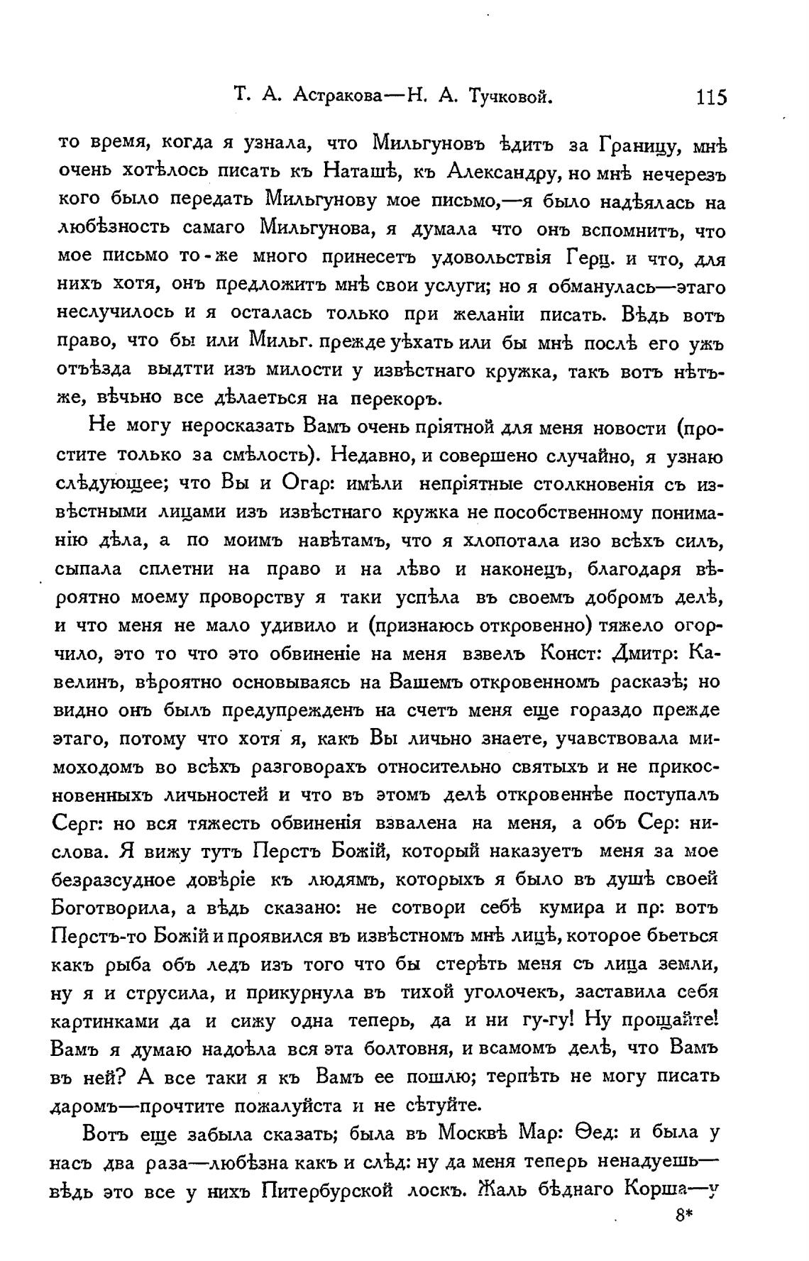 кого было передать Мильгунову мое письмо,—я было надъялась на