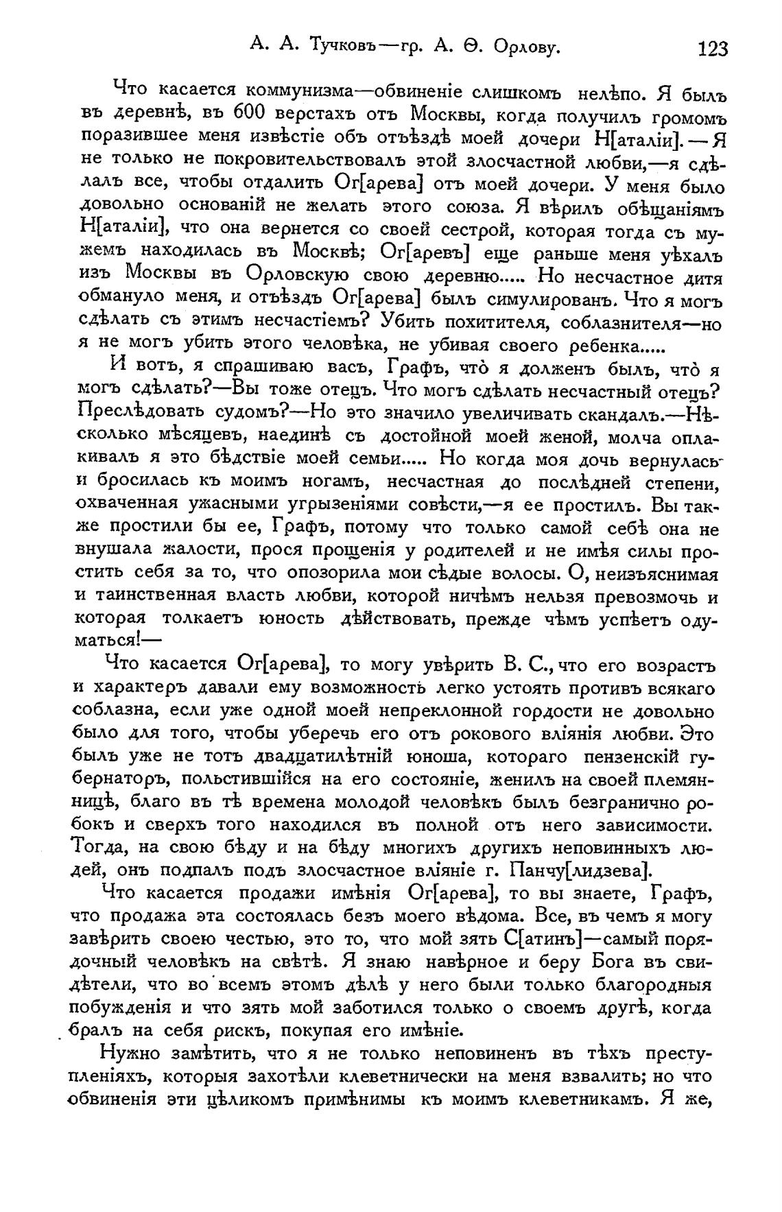 А. А. Тучковъ—гр. А. Э. Орлову.